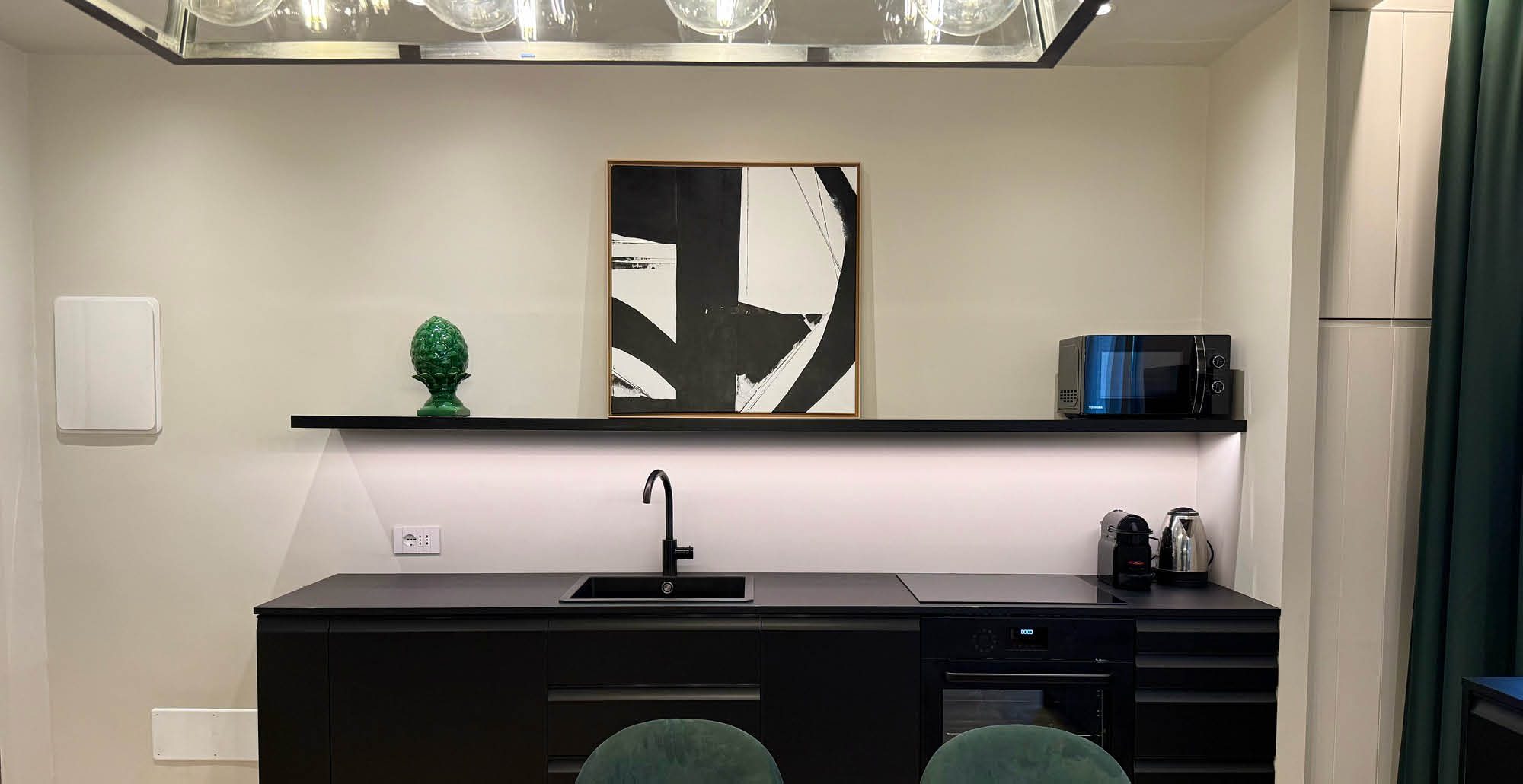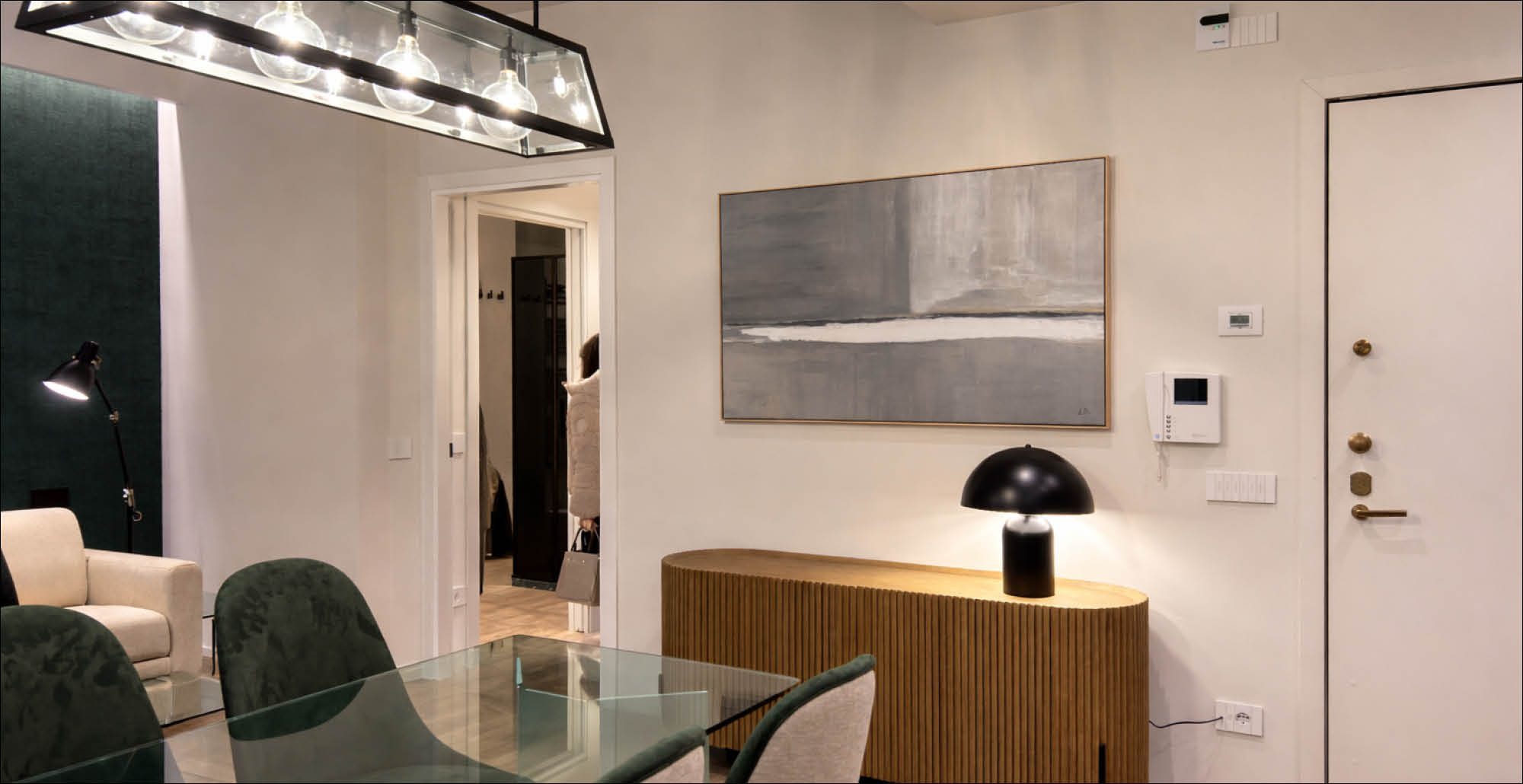 Al primo piano, con affaccio sul viale, cattura il ritmo della città senza rinunciare all’intimità.