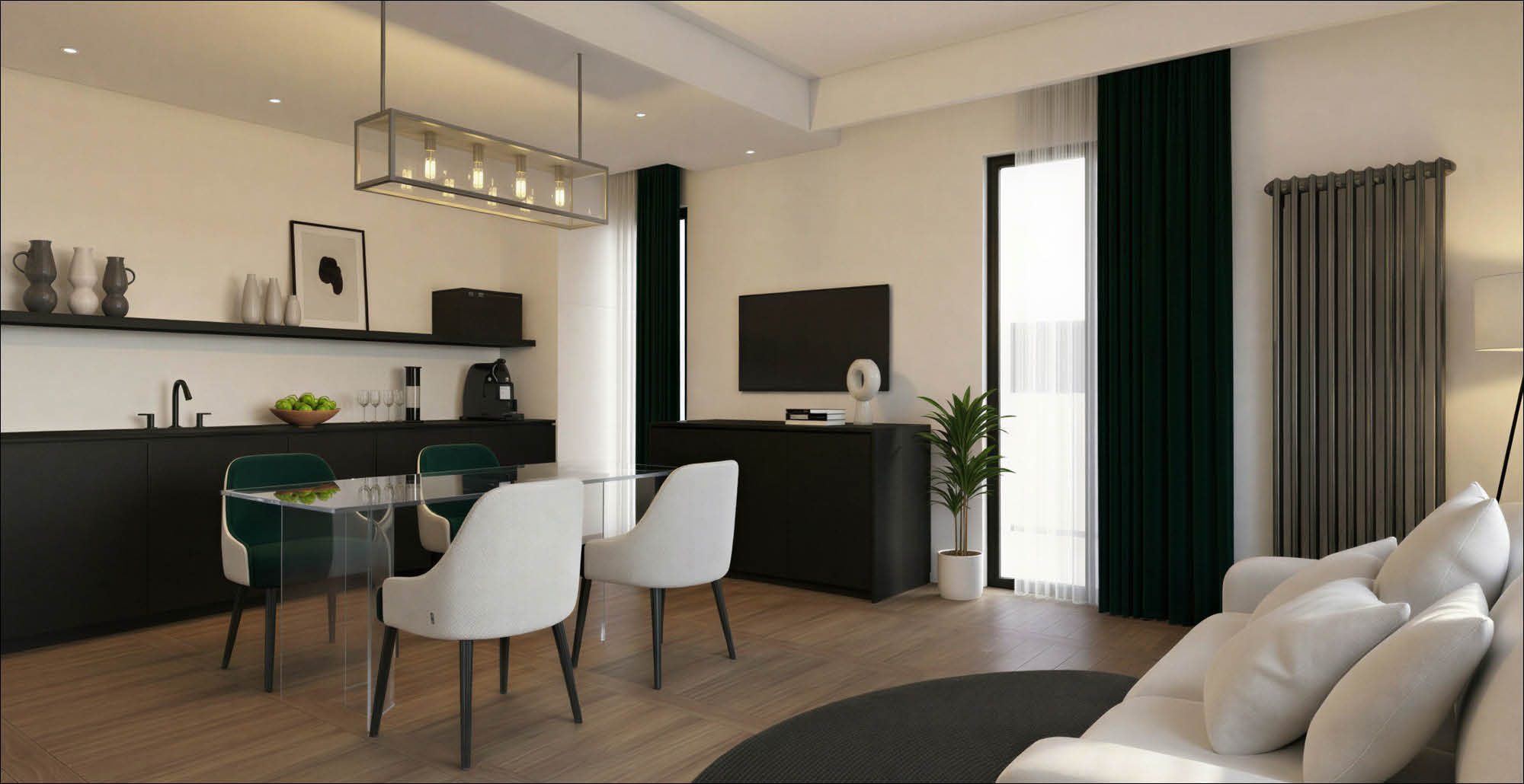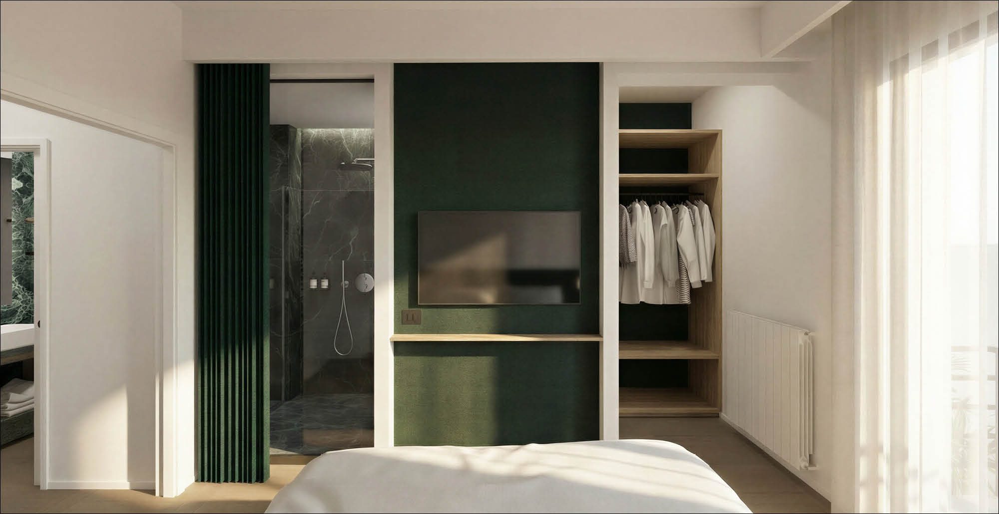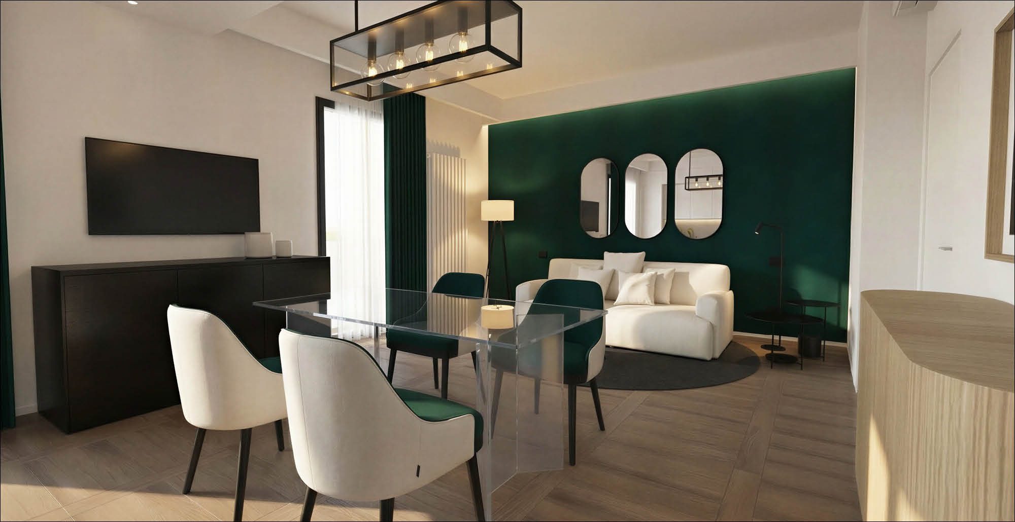 Interni calibrati e palette verde definiscono una eleganza fluida e contemporanea.