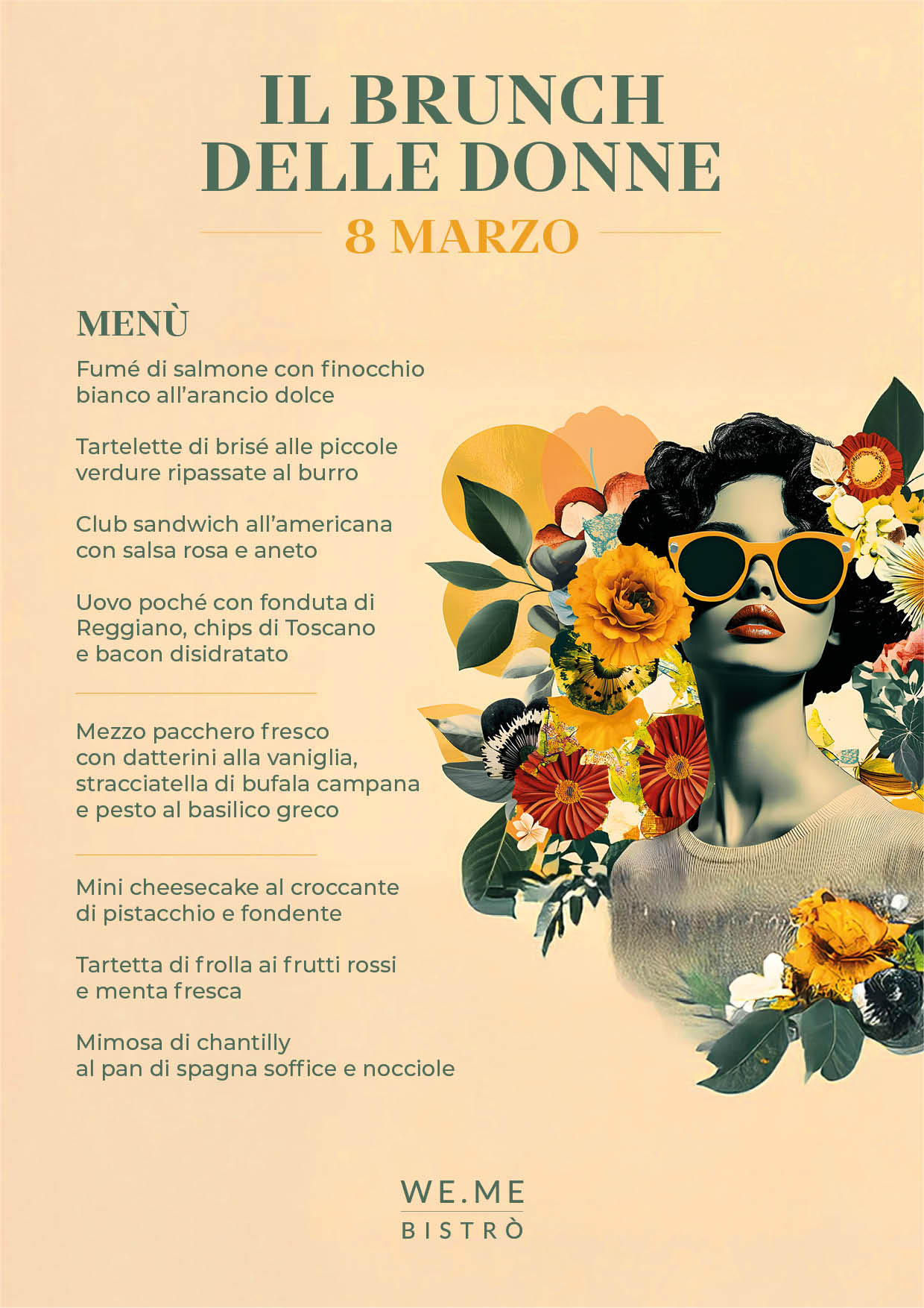 Ti proponiamo un’esperienza su misura, tutta al femminile: piatti dai sapori audaci serviti con cura — dagli antipasti al primo caldo, fino alla dolcezza finale dei dessert — per trasformare il vostro brunch in un momento piacevolmente insolito, dedicato al piacere di stare insieme.